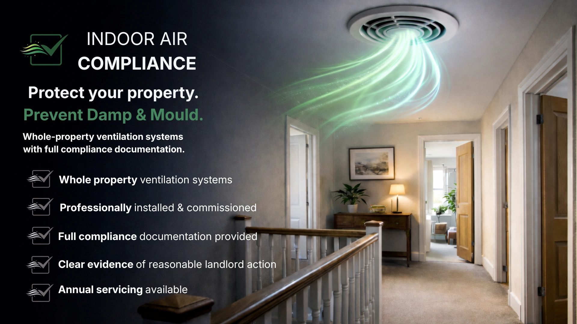 Our mission is to protect both property and people by delivering practical, whole-property ventilation solutions that reduce damp and mould risk, safeguard tenant health and provide landlords with clear, defensible evidence of responsible action.